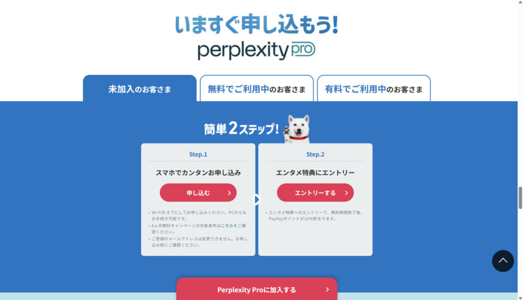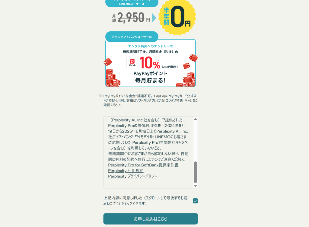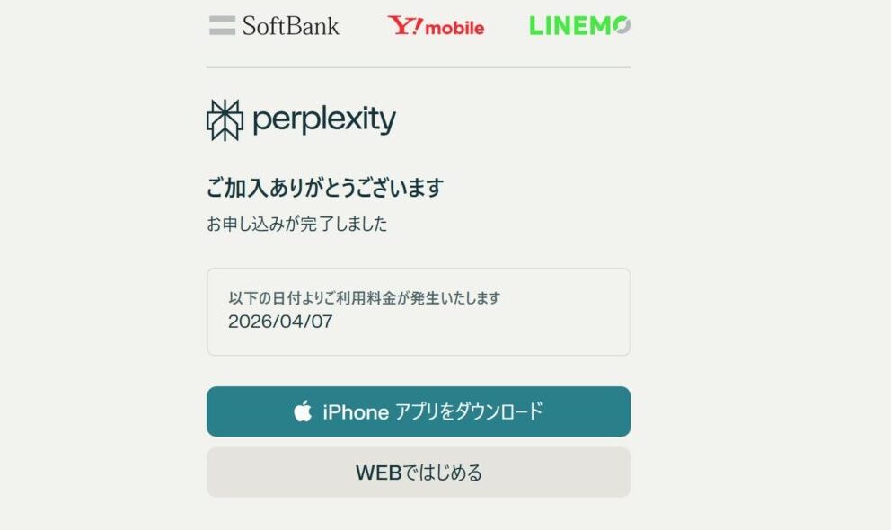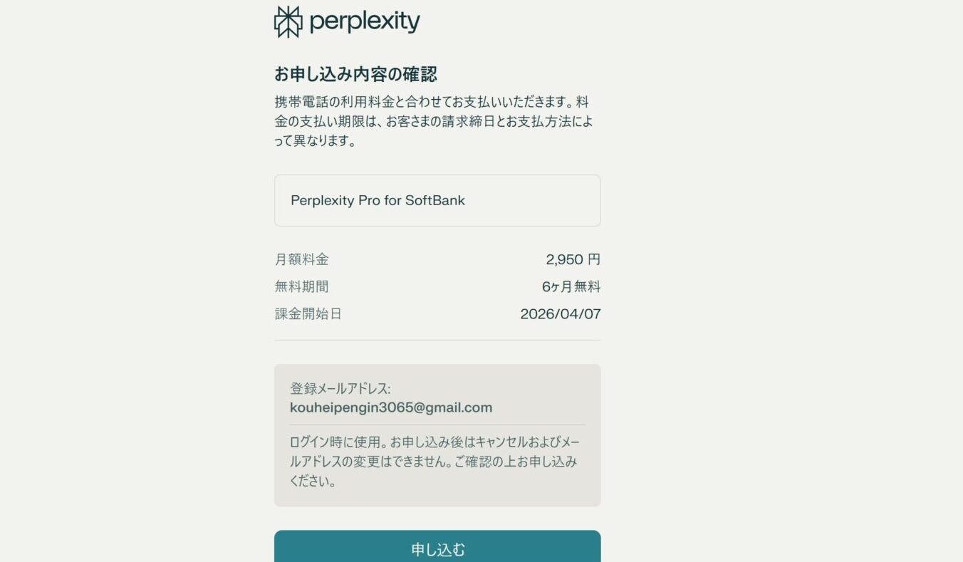 - キャンペーン内容:ソフトバンクユーザーならPerplexity Proが6か月間無料!
