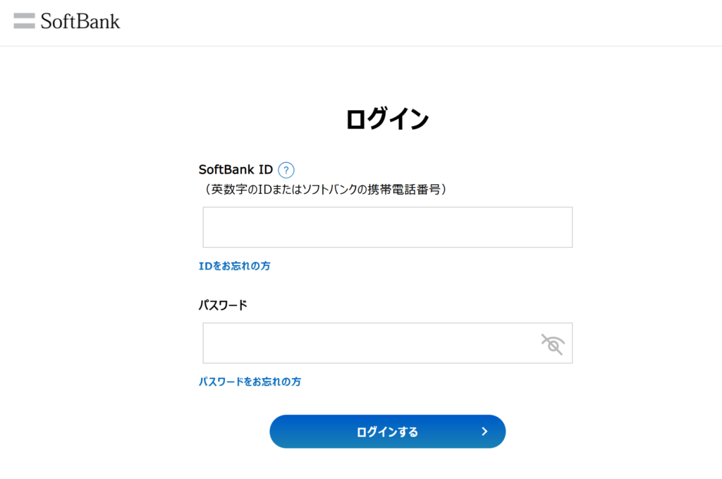 ④ソフトバンクのログイン画面が出てくるので、IDとパスワードを入力して「ログインする」をクリックする。