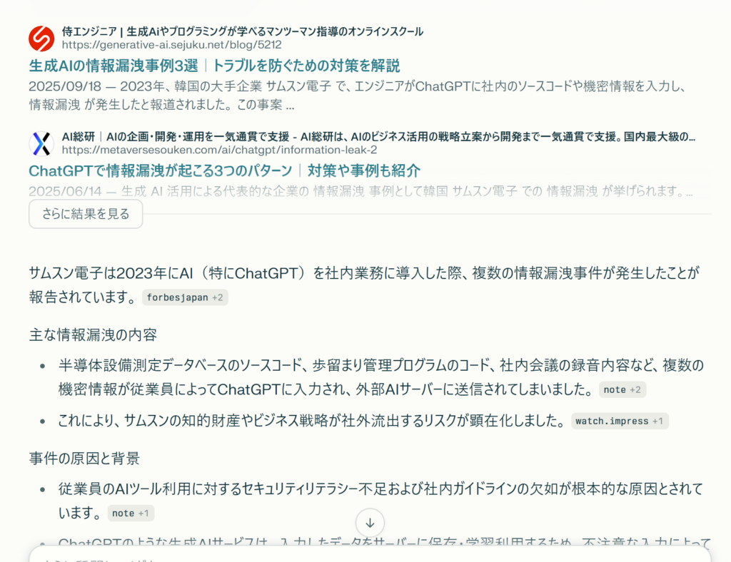 このように、それぞれの情報の根拠を簡単に確認できるため、安心して利用できます。レポート作成や調査など、信頼性の高い情報が必要な場面でも大活躍してくれますよ。