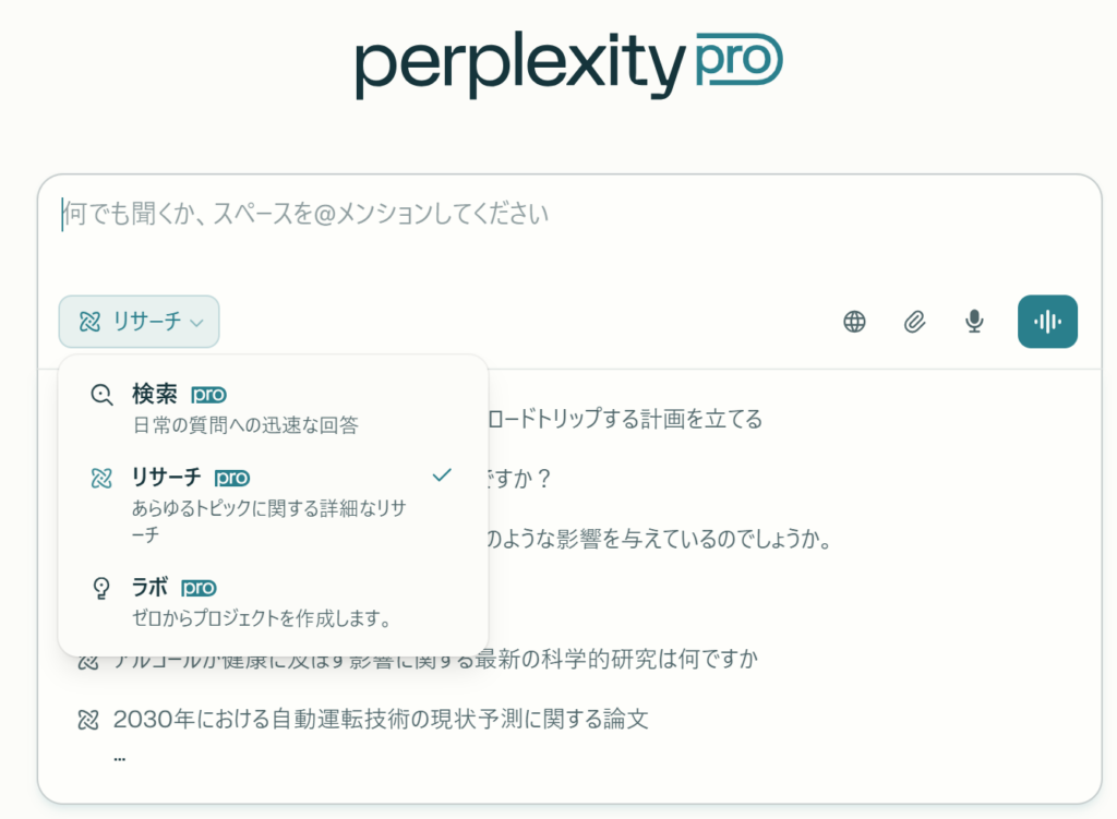 サインインしたらPerplexity Proをすぐに使い始めることができます。