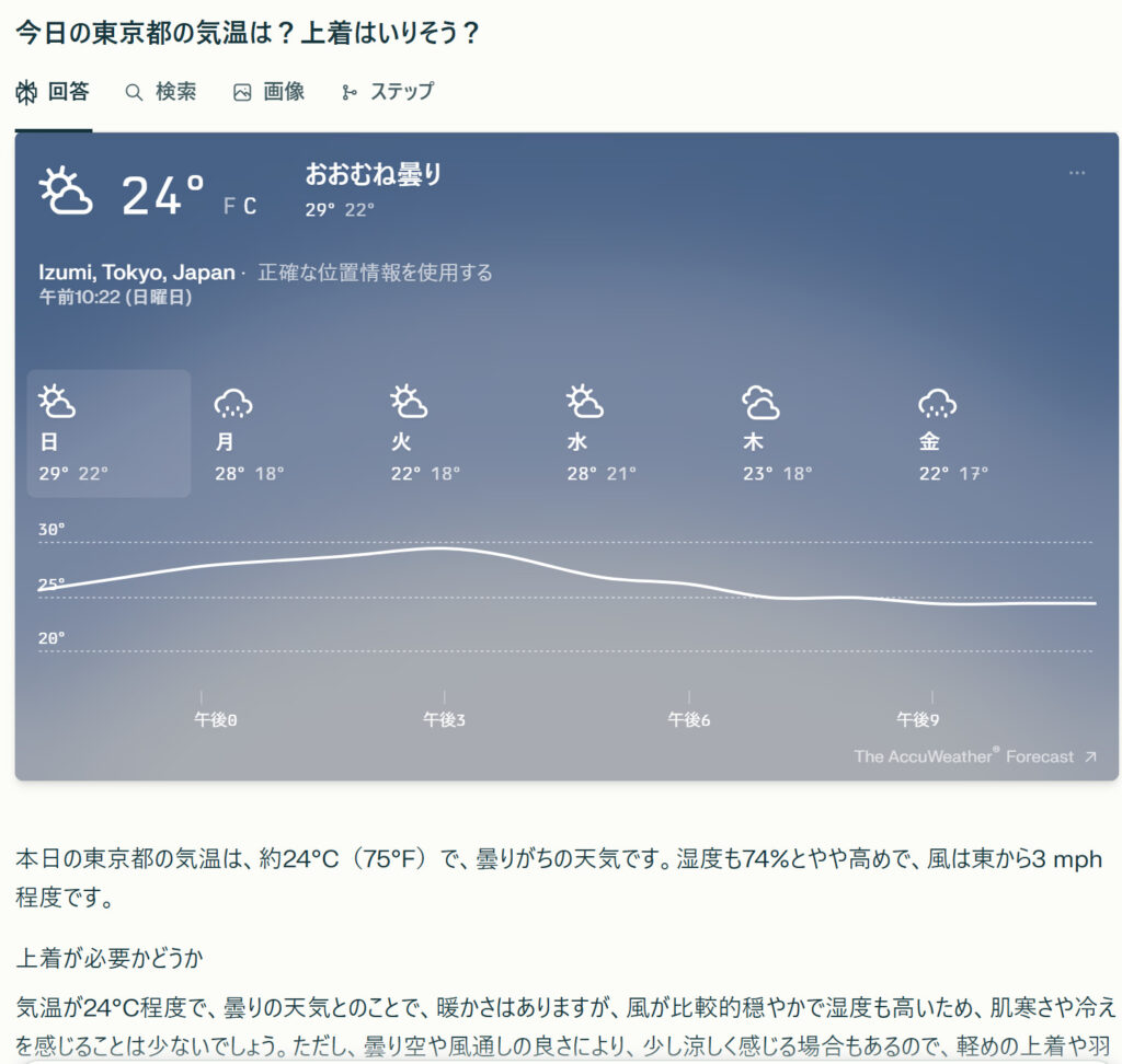 日常のあらゆる疑問に対して、ウェブ検索の情報をもとに回答してくれるので、いちいちいろんなサイトを開く必要がないのが非常に便利です。