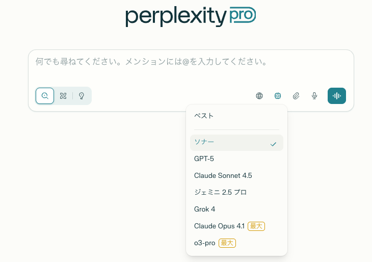 Sonarモデルは、Perplexityの標準的な立ち位置のモデルです。
