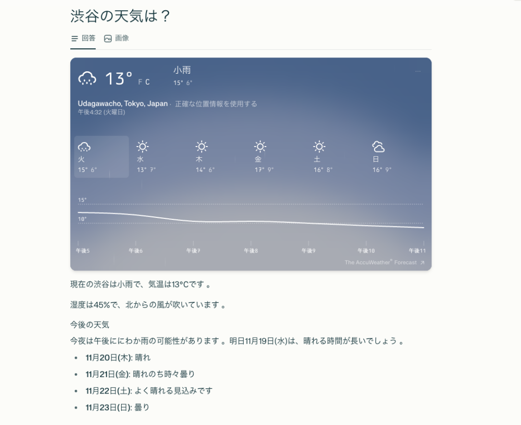 ⇨ユーザー体験としては「Google 検索の結果を自動で要約して、根拠付きで返してくれる」感覚に近く、まずは素早く全体像を掴みたい場面に向いた設計。
