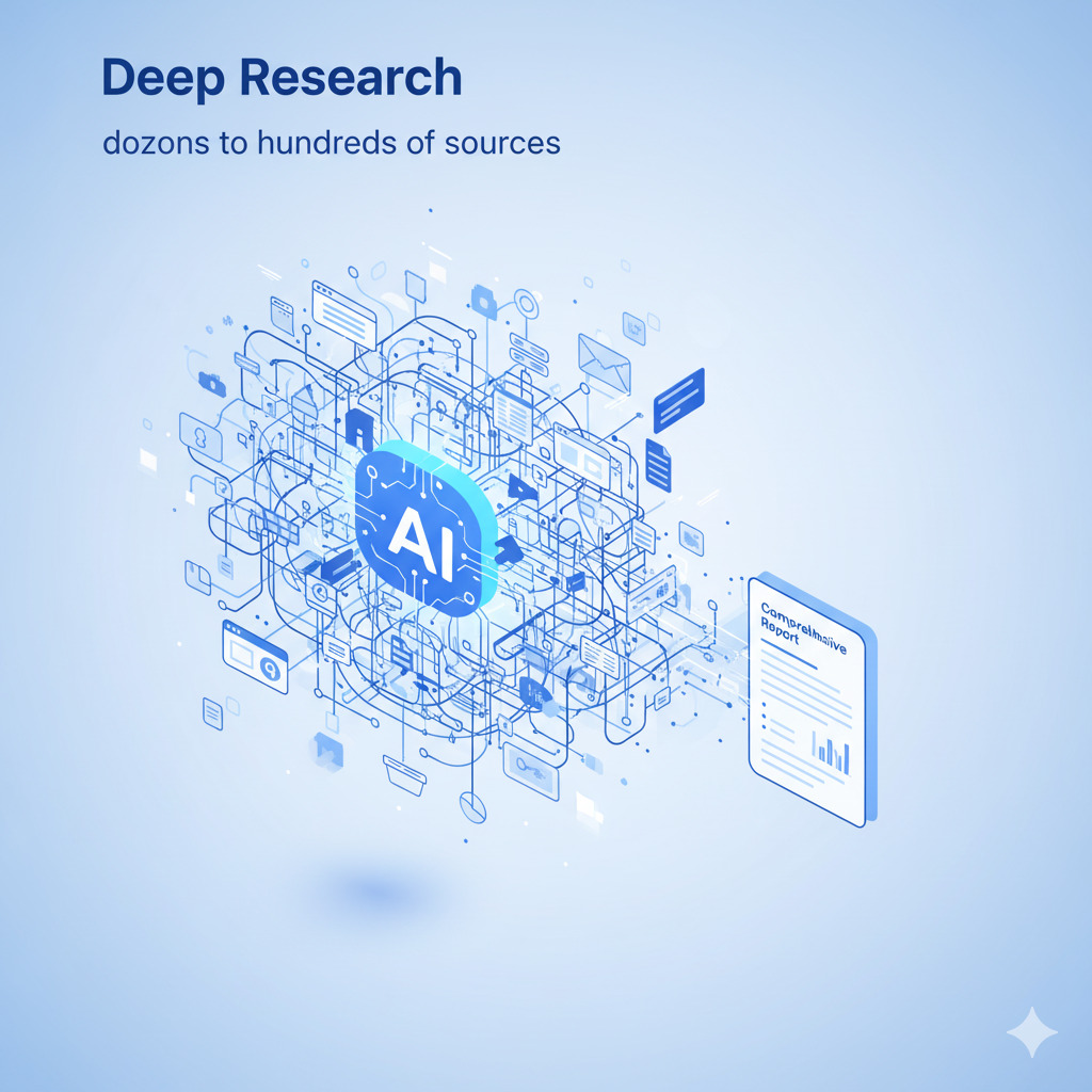 - ディープリサーチは、複数ソースを横断調査し、高度な分析を行うAIレポート作成機能