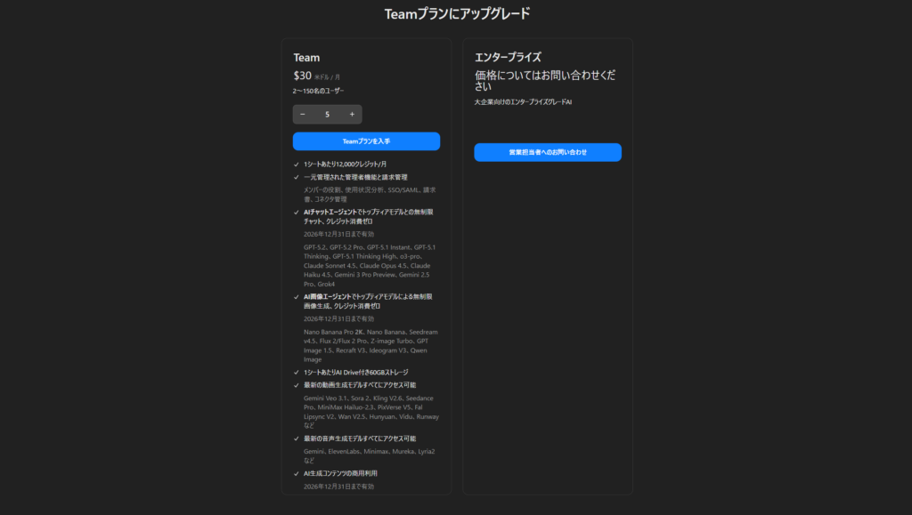 - 個人向けプランはFree/Plus/Proプランの3種類、法人向けプランはTeam/Enterpriseプランの2種類