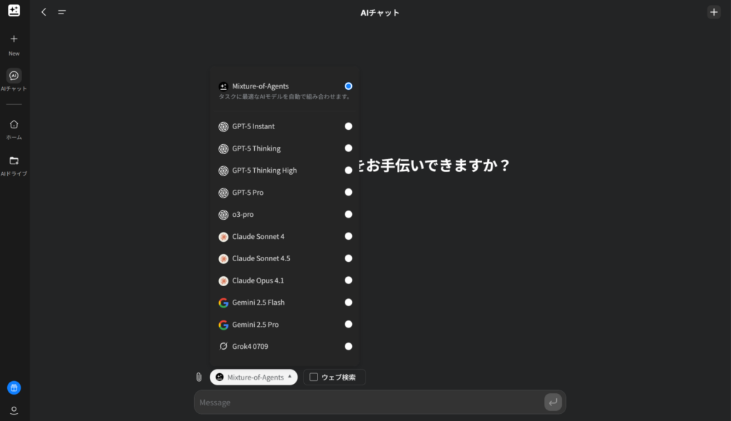 AIチャットでは、GPT-5 ProやGemini 2.5 Pro、Claude Sonnet 4.5といった最新のAIモデルを使用できます。