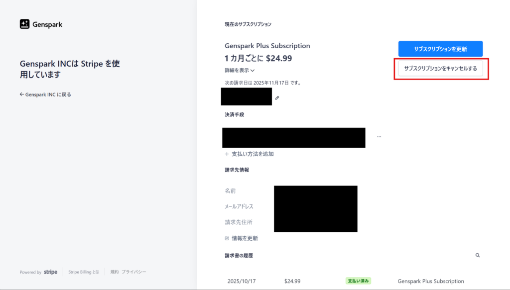 Genspark Plus解約手順