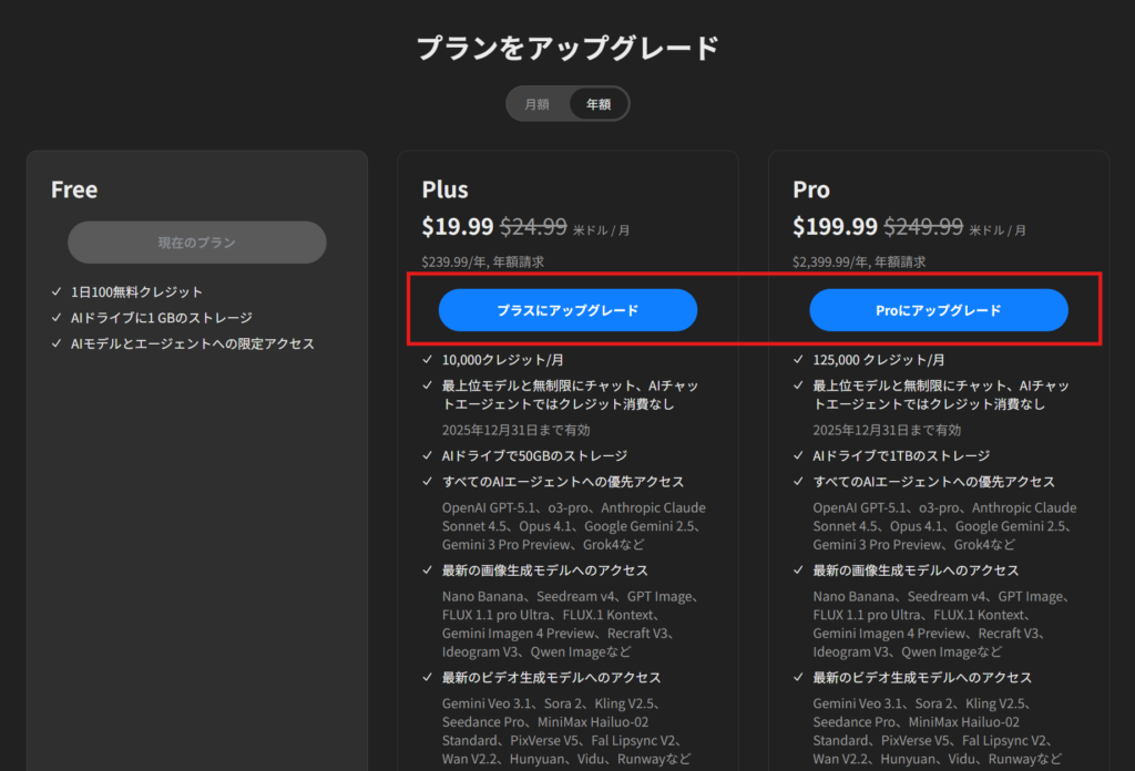 まずPlusプランに課金し、それでもクレジットや機能に制限を感じる場合にのみ、Proプランに移行することをおすすめします。