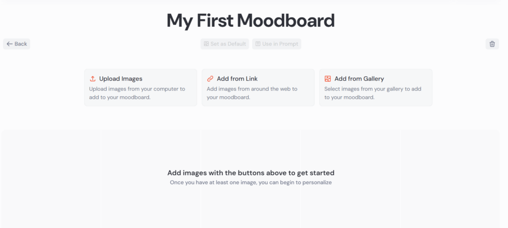 ムードボードは、最大100枚までの参考画像を使用できます。そして、以下の3つの追加方法があるんです。