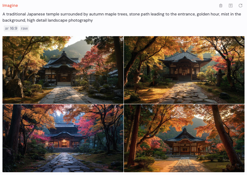 生成済みの画像の構図やレイアウトを保ったまま、プロンプトやパラメータ(バージョン指定・アスペクト比など)を変更して再生成できる機能です。/settingsからONにすることで利用可能になります。たとえばV7で作った画像のバージョンを--v 5.2に書き換えて再生成すれば、V5.2の4xアップスケーラーを適用することもできます。