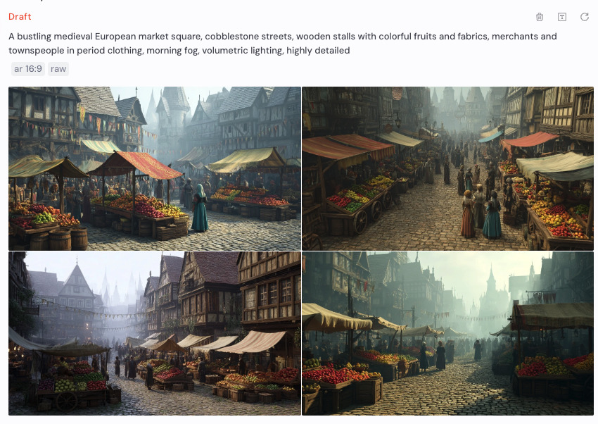1. ドラフトモードで10案ほど高速生成(構図・雰囲気を比較)