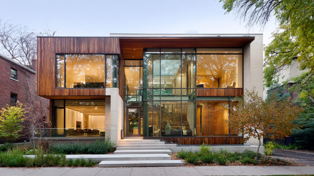 modern house, wooden panel facade, flat roof, soft morning light, front angle view --ar 16:9 --sref https://〇〇〇 --seed 12345