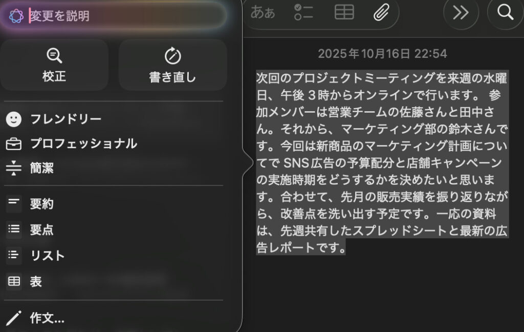 ここでは、Mac版で利用できる主なAI機能をわかりやすく紹介します。