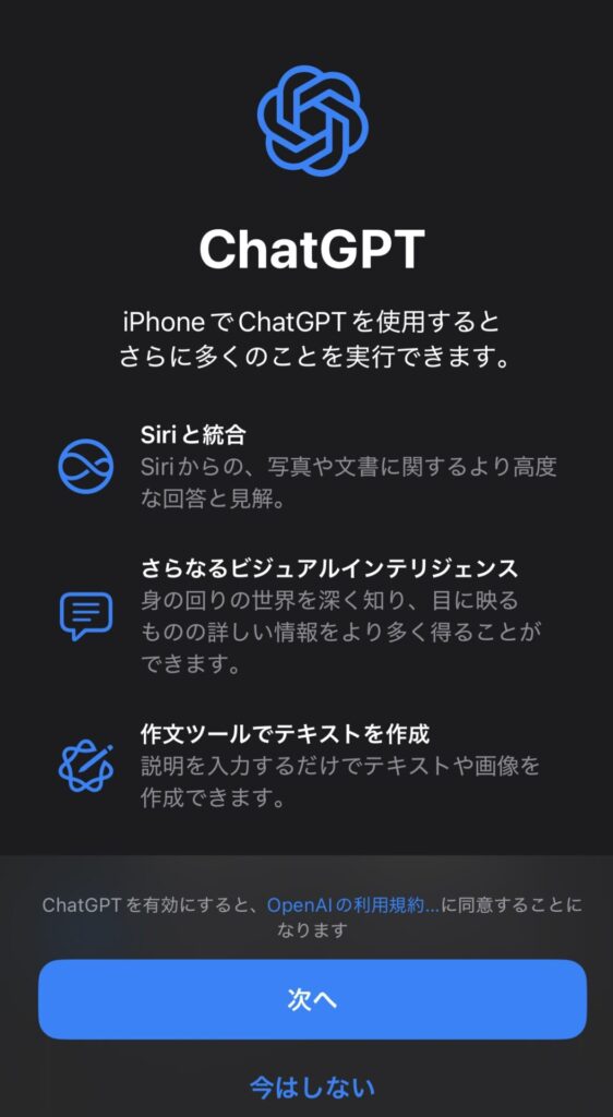 Apple側が勝手にデータを送信することはなく、「必要なときだけChatGPTを呼び出す」という設計になっています。