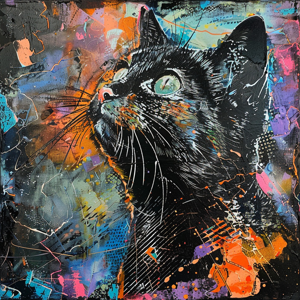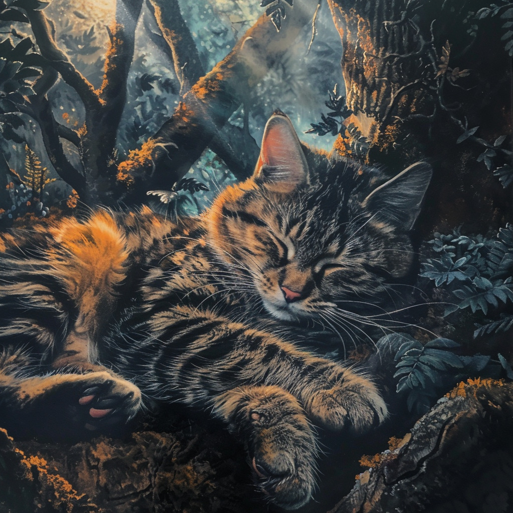 すると、同じ長文プロンプトであっても猫が主役として大きく描かれ、背景要素は大きく弱まり、全体として“猫のアップ写真”のような構図に変化しています。