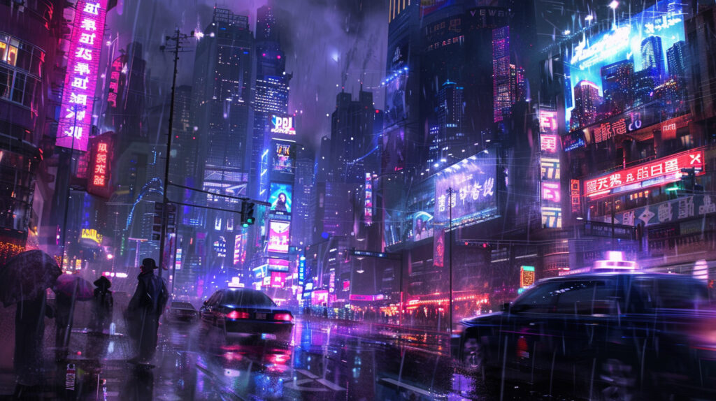 一方で、ネオン街(neon city)に強いウェイトを付けた画像では、都市の光や建物のディテールが圧倒的に強調されるようになります。