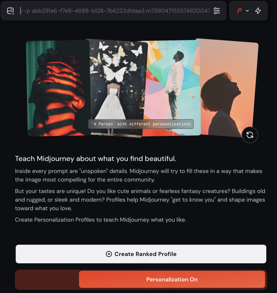 Midjourneyには、ムードボードの他に、「プロファイル機能」という仕組みがあります。