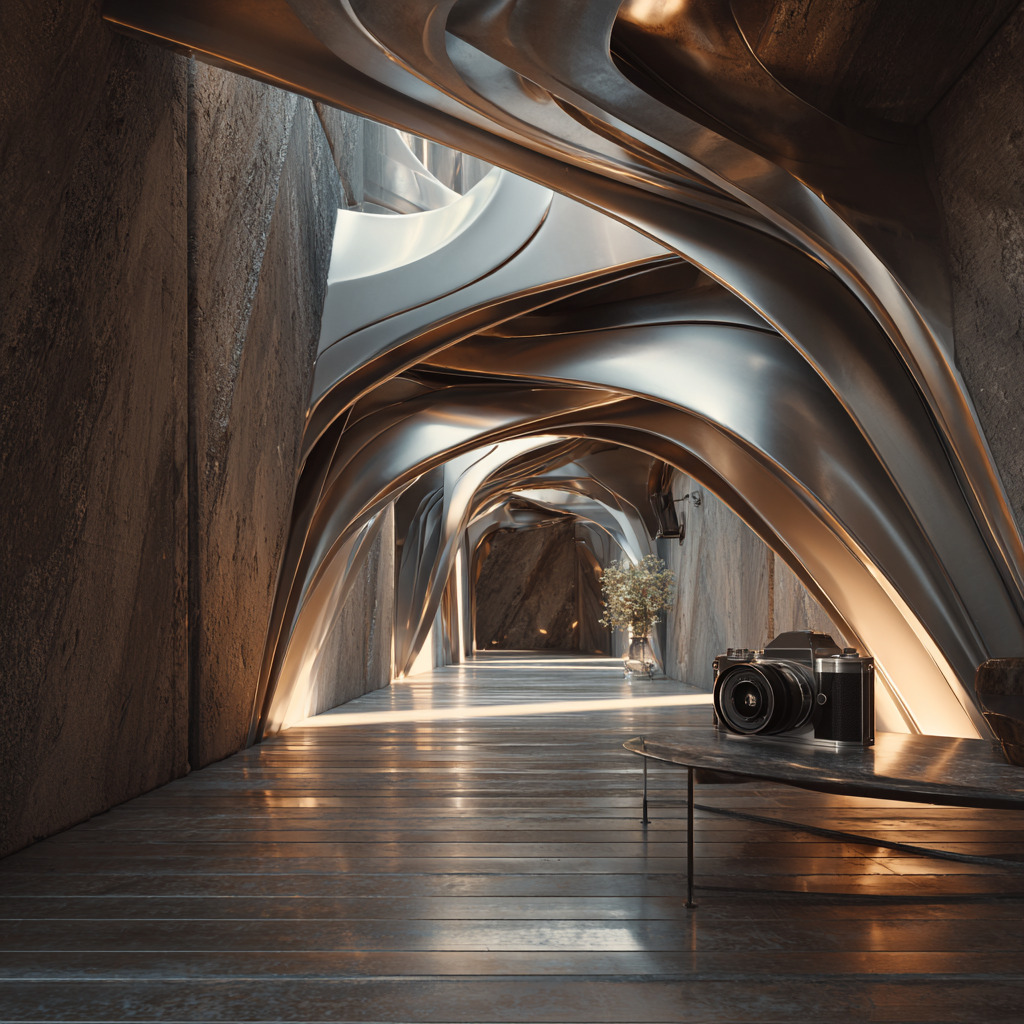プロンプト: [画像URL] modern futuristic design, sleek metallic surfaces --iw 0.5