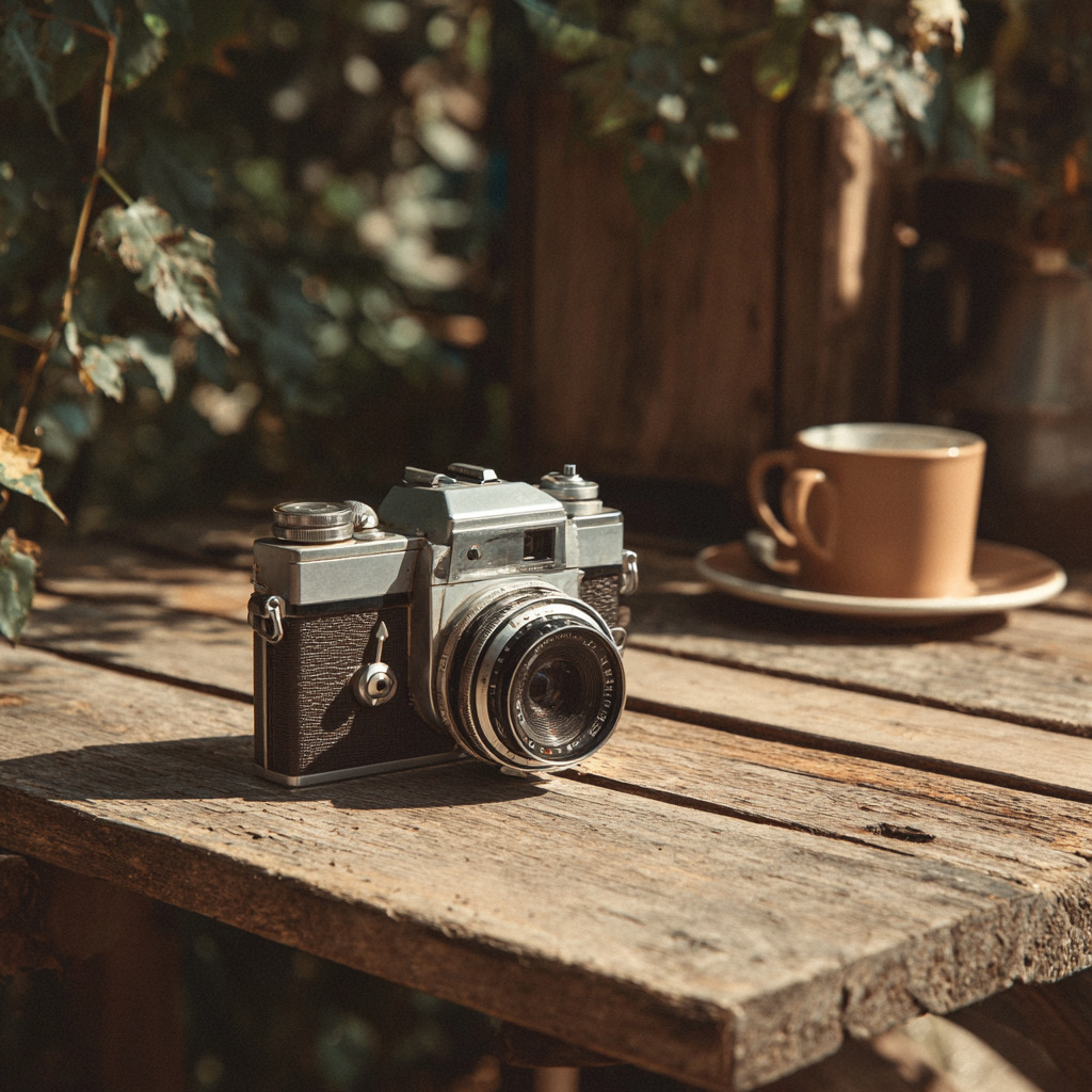 元画像: vintage camera on wooden table, retro aesthetic --ar 1:1