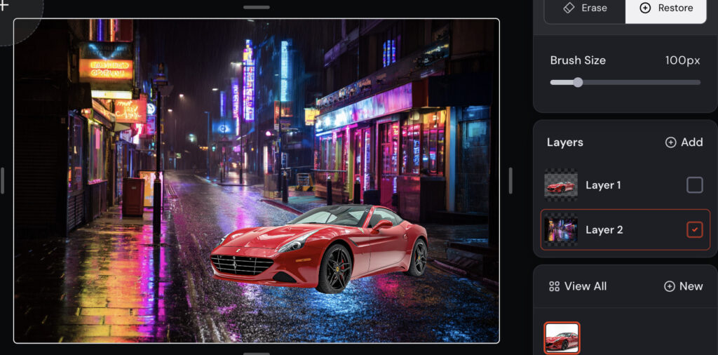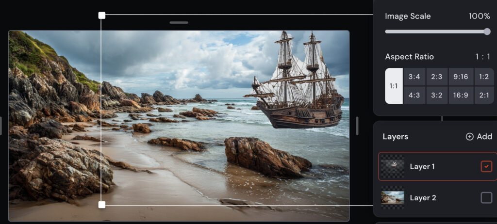 Web版MidjourneyのEditorでは、レイヤー機能を使って複数の画像を重ねたり、Smart SelectやEraseで部分的に切り抜いたりできます。