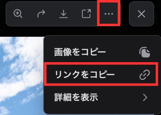- 右上の「リンクをコピー」を選択すると、その画像のURLがクリップボードに保存される