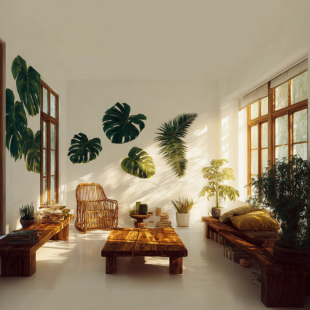 元画像2: tropical plants, monstera leaves, green botanical elements --ar 1:1