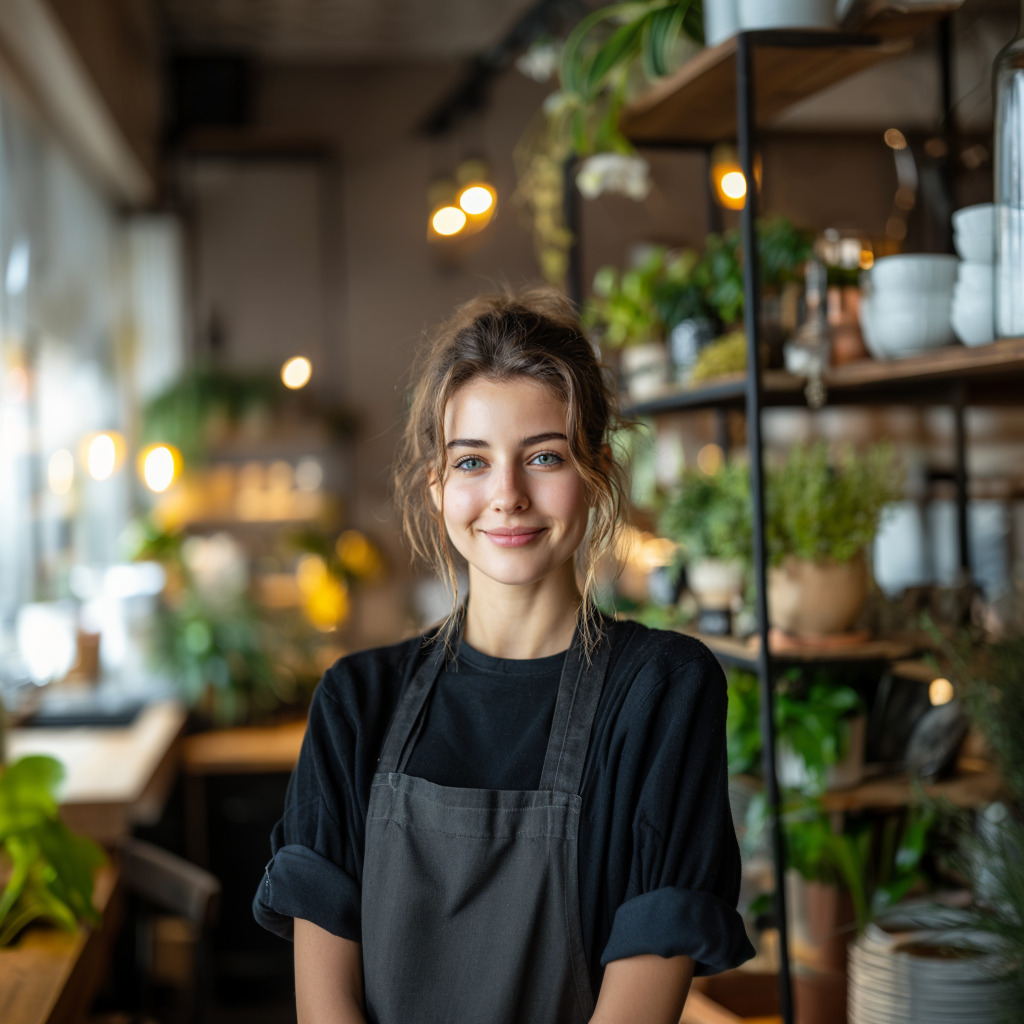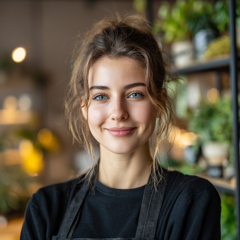 Portrait of a young woman with brown short hair, neutral expression, realistic style, professional photography修正後