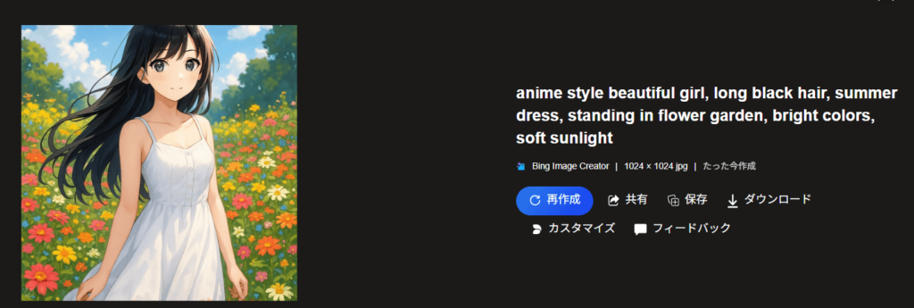 生成された画像は、クリックすると拡大表示され、ダウンロードや共有も簡単にできますよ。