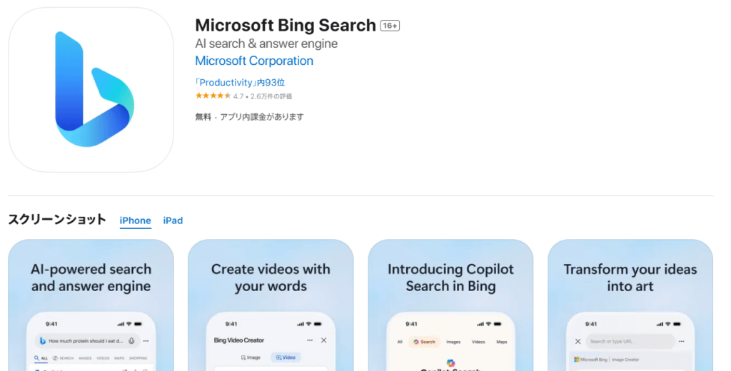 実は、Bing Image Creatorには専用アプリはないのですが、Bingの公式アプリから利用することができるんです!