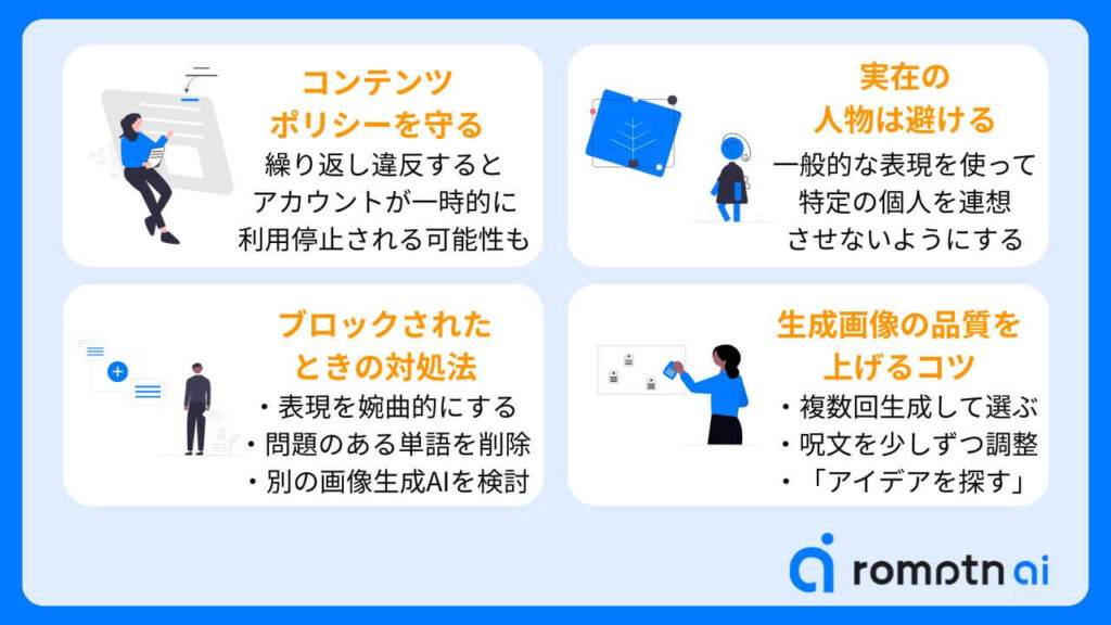 - コンテンツポリシーを守る:規約違反を繰り返すとアカウント停止の可能性