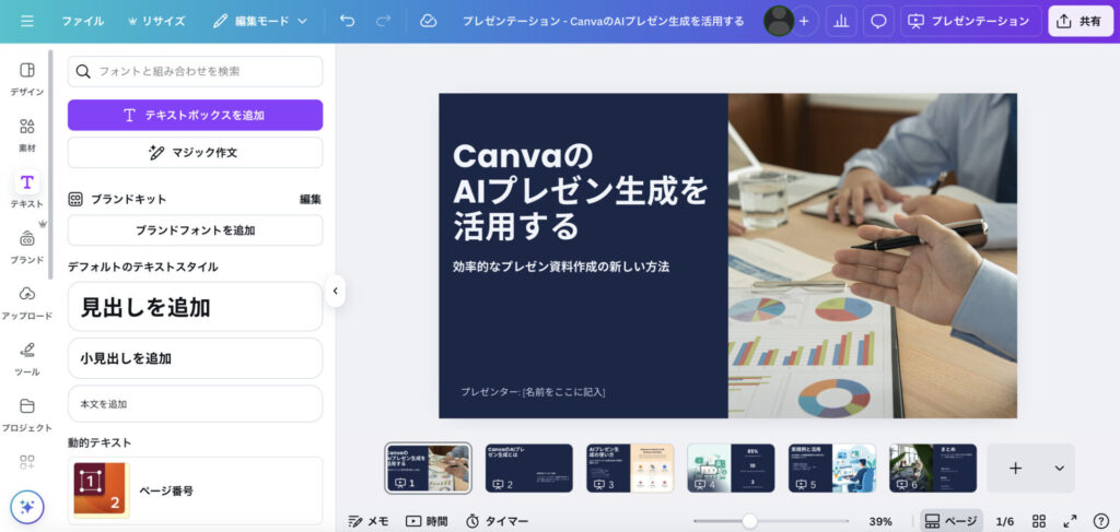 • CanvaのAIスライド生成はAIが自動でプレゼン資料を提案してくれる超便利な機能