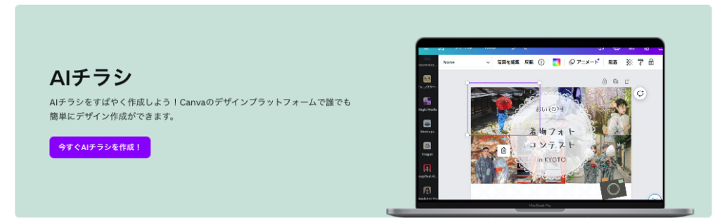 - CanvaのAI機能を活用すれば、デザイン未経験者でも短時間でプロ品質のチラシが作成できる