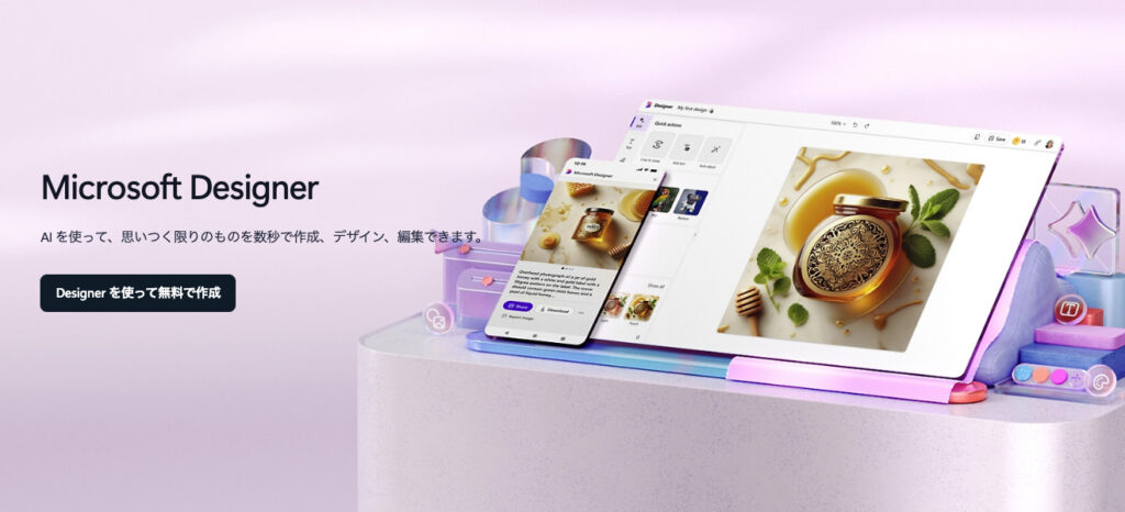 Microsoft Designerは、Microsoftが提供するAIデザインツールです。WordやPowerPointなどOffice製品との親和性が高く、普段からMicrosoft 365を業務で使っている方にとって導入ハードルが低い選択肢です。