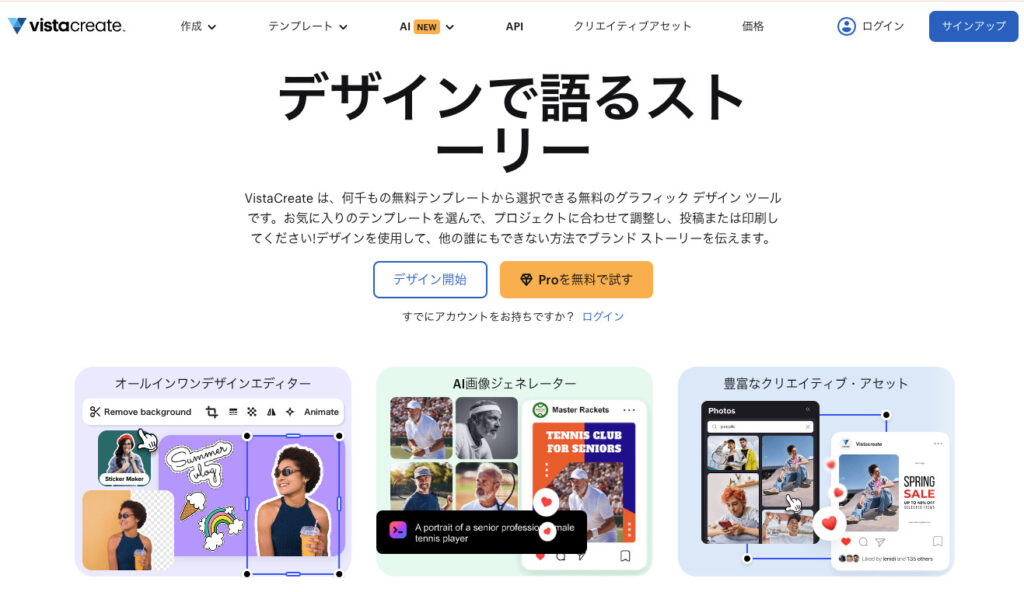 VistaCreateの主な特徴は以下の通りです。