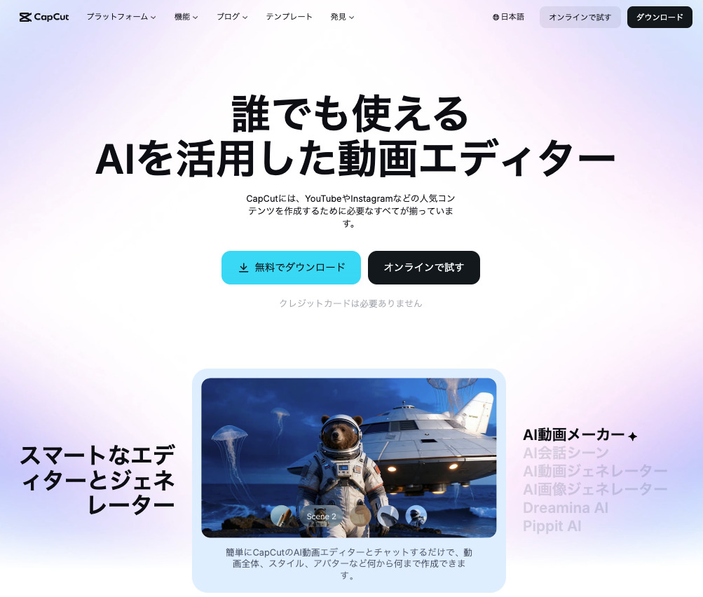 CapCutはTikTokやInstagramなどのSNS向けショート動画の編集ツールとして若い世代を中心に普及しており、AIアバター機能も徐々に拡充されています。