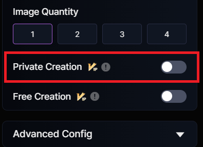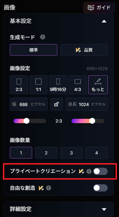 画像生成画面で「Private Creation」をオンにして生成する