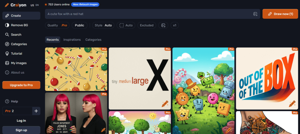 Craiyonは登録不要でブラウザ完結できる生成AIとなっています。特徴としては、無制限生成で質の高いクオリティ画像の生成が可能です。ポップでクリエイティブな画像を得意としており、多様なスタイルのAIアートを作成することが出来ます。