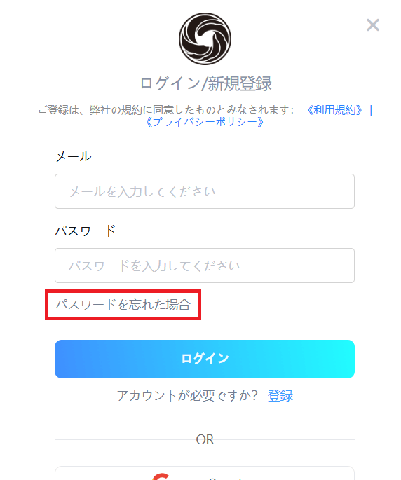 パスワードを忘れてしまった場合は、ログインの際の「パスワードを忘れた場合」をタップし、パスワードを再設定することが出来ます。