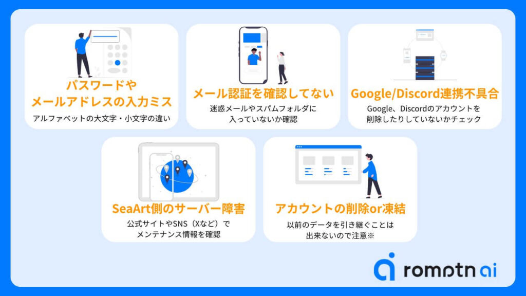 SeaArtにログイン出来ない主な原因とそれぞれの対処法