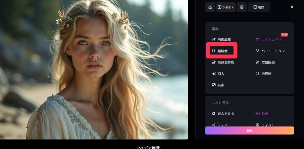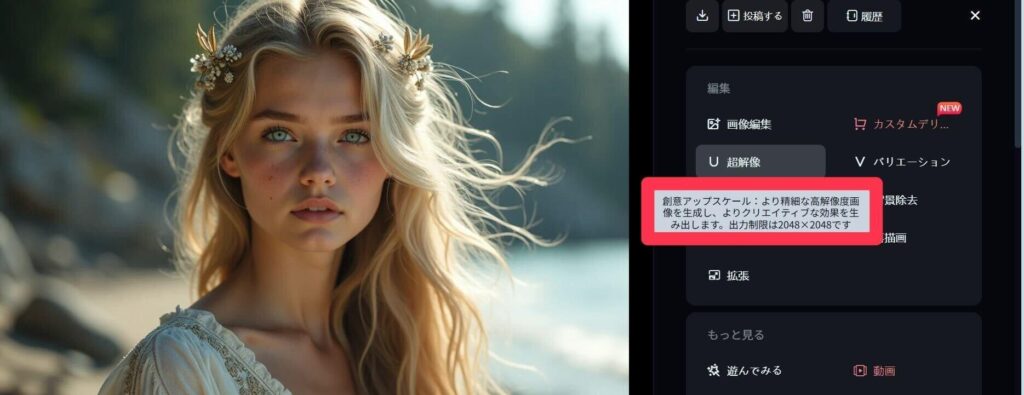 SeaArt内で生成した画像なら、さらに簡単にアップスケールできます!