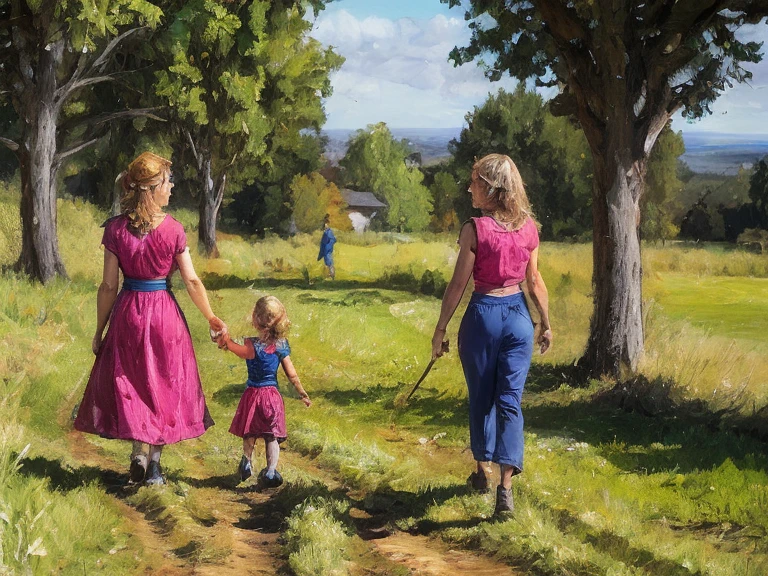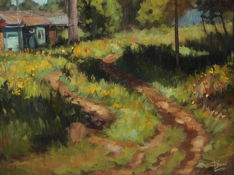 impressionist oil painting style, landscape, soft brush strokes, natural light, warm colors, artistic atmosphere