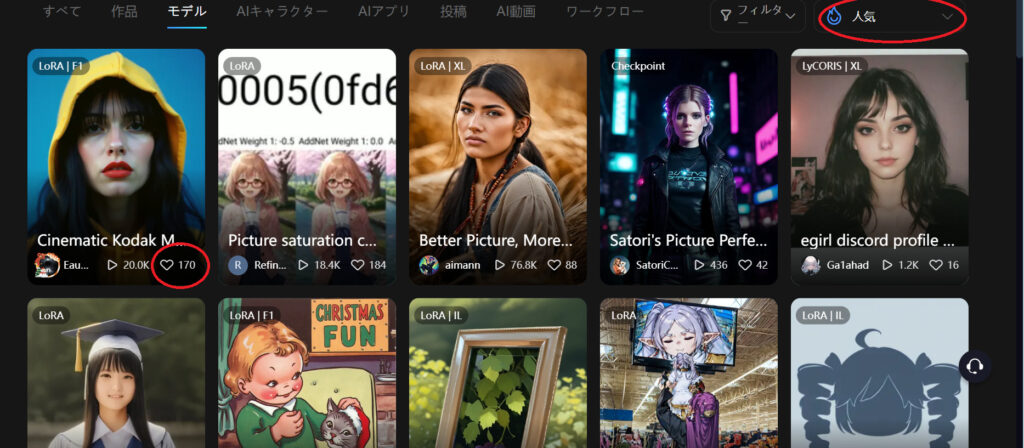 【モデル選びのコツ】- 「創作回数」や「お気に入り数」が多いモデルは安定している