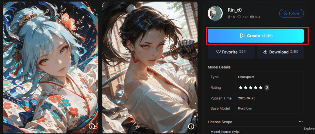 SeaArtで生成した画像を商用利用したい場合は、必ずモデルのライセンスを確認しましょう。