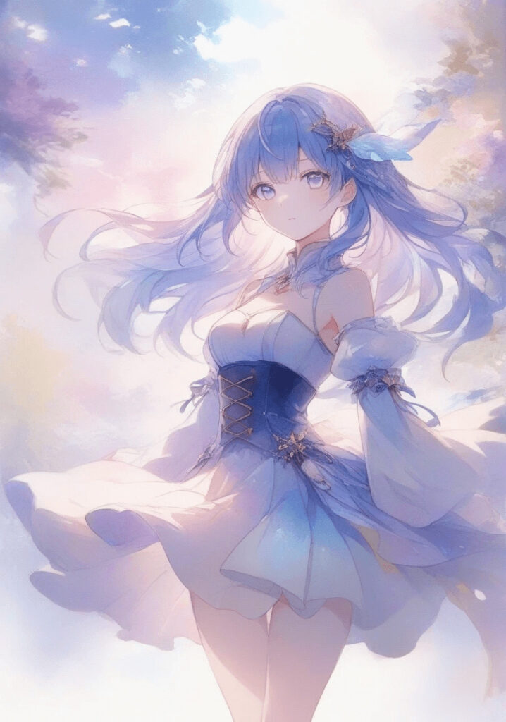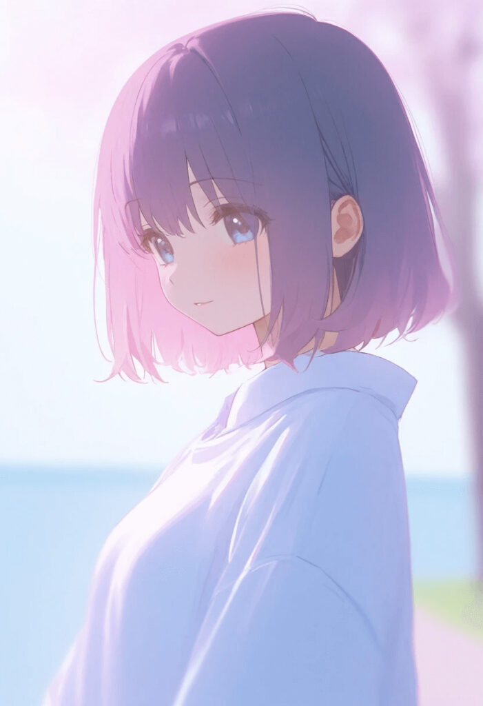 慣れてきたら、「sitting on a bench(ベンチに座っている)」や「wearing a white dress(白いドレスを着ている)」など、具体的な指示を追加していくとさらに理想に近づきますよ!