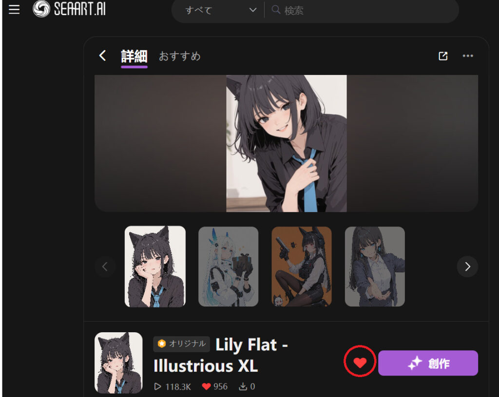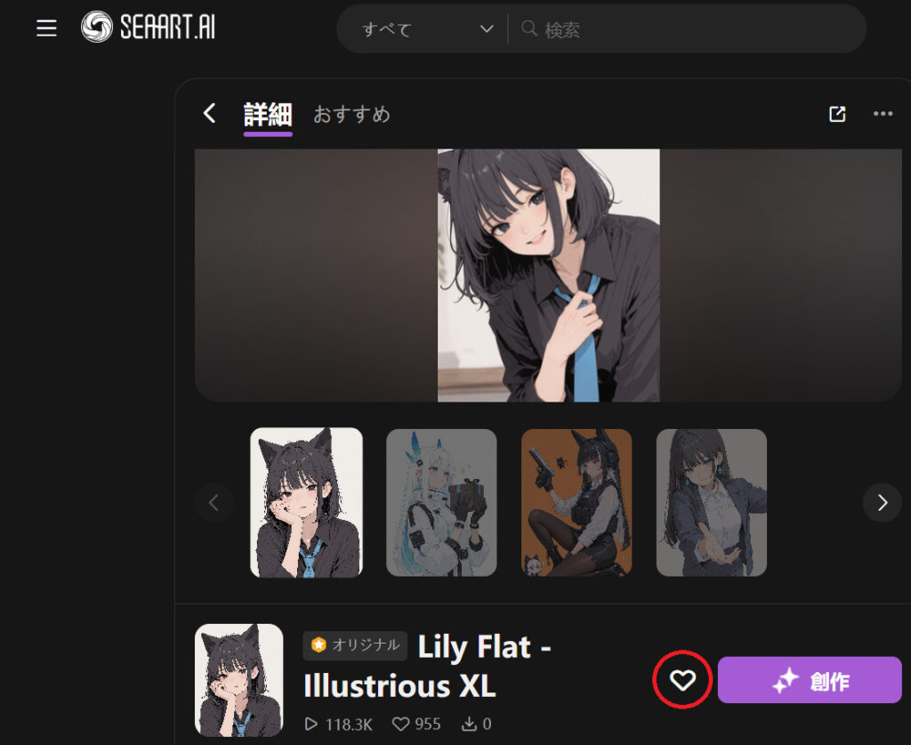 SeaArtでお気に入り登録するやり方(画像・モデル)