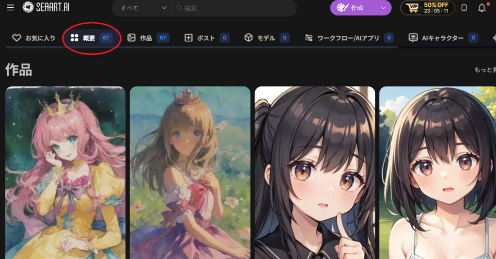 ※「概要」では、自分が生成した画像がすべて表示されます