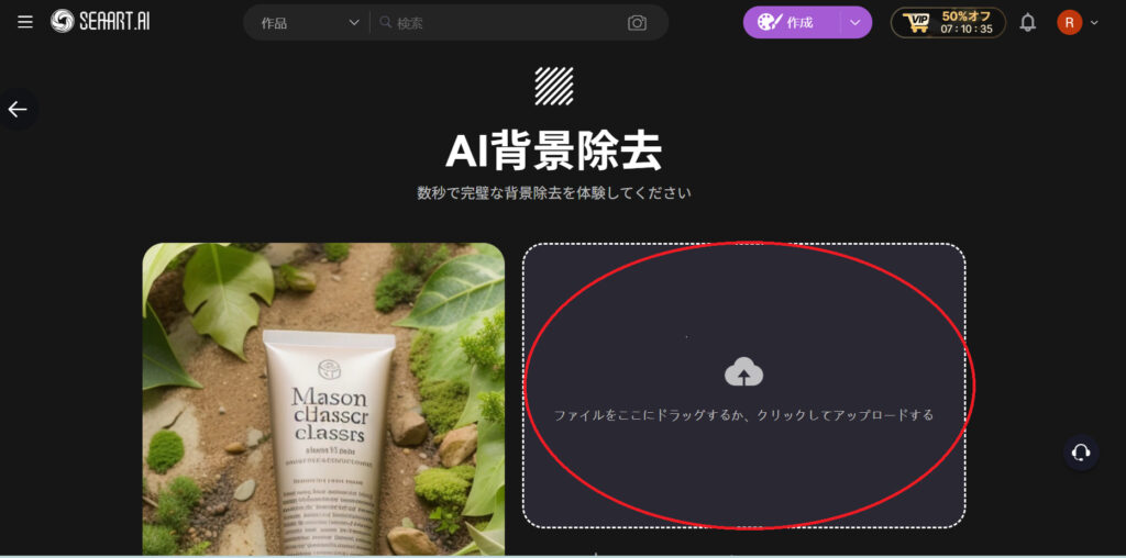 SeaArtの背景削除機能は、画像をアップロードするだけでAIが自動的に被写体を認識して、背景を切り抜いてくれる便利な機能です。
