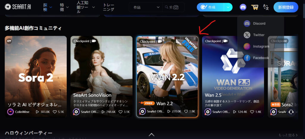 ②次に右上にある「SeaArt Official」を下にスクロールします。