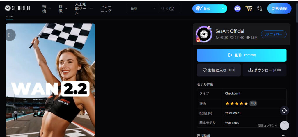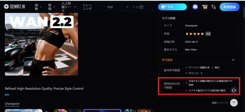 先ほど、SeaArtでの商用利用は可能だが全ての画像が使えるわけではと説明しました。そのため、使用したい画像の商用利用の可否を調べる必要があります。