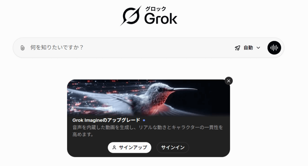 イーロン・マスク氏が率いるxAI社が提供しているGrok。Xのプラットフォームに組み込まれているため、リアルタイムの情報をもとに回答を生成できます。